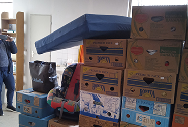 Dépôts des cartons des choses d'AENSAH à l'Abbaye de Notre-Dame des Dombes en date du 25/03/2023 pour envois à la Communauté du Chemin Neuf basée à Kinshasa dans le cadre du partenariat avec AENSAH association, pour les enfants de la rue et enfants handicapés. C'est pour le conteneur qui va partir au Congo-Kinshasa au mois de juin-juillet 2023.