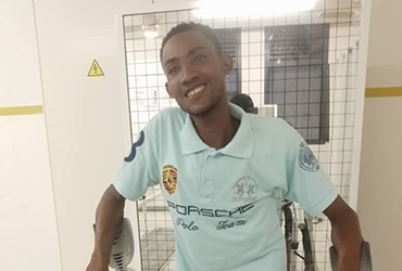 Jérémie SANISA, jeune congolais à Kinshasa de 28 ans ne pas né handicapé, mais qu'il a été à l'âge de cinq avoir contracté une maladie qu'il l'a rendu ainsi. Aujourd'hui sans ce Corset, il ne peut pas se mettre débout et marcher. Le Corset été cassé qu'il a dû solliciter l'aide à AENSAH par son président qui celui-ci à son tour a dû contacter les membres de cette association puisqu'ils sont engagés dans cette association avec but d'aider et avec chacun d'un cœur généreux et spirituellement dans l'Amour du prochain.