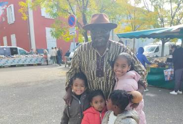 L'église de Décines étant notre partenaire officieuses nous vient en aide de temps à autre comme lors sur la situation de Jérémie SANISA pour l'achat du Corset appareil d'handicap. Ici c'est lors de vente des aliments africains pour l'église dans le compte d'AGF association de l'église pour les jeunes. Le président d'AENSAH association avec les enfants des membres de l'église de Décines.