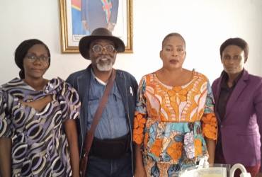Nous sommes dans le bureau du Bourgmestre adjointe que vous voyez à ma gauche suivi de la secrétaire ainsi que l'agent de la commune de N'djili lors des démarches administratives pout la validation de AENSAH association. Le bureau de AENSAH se trouvera dans sa commune.