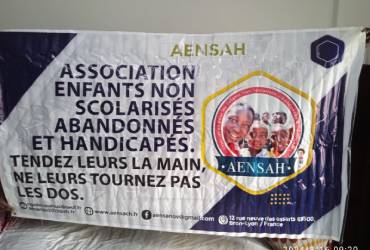 Voici la banderole d'AENSAH association qui sera placé là où sera érigé le bureau d'AENSAH CK(Congo Kinshasa) dans la commune de N'djili sur le boulevard Lumumba qui mène vers l'aéroport de N'djili.