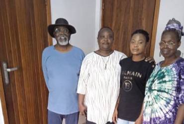 Le président d'AENSAH association, maman de Joséphine l'épouse du Président et membre d'AENSAH assocaition avec la secrétaire générale chargé de la communication d'AENSAH-CK(Congo Kinshasa) en blouse blanche et sa soeur. Elle sont venues visiter le président et son épouse à l'endroit où ils étaient logés, chez les missionaires catholiques à la Société de Verbe du Vin à Limété au 15ème rue n°12.