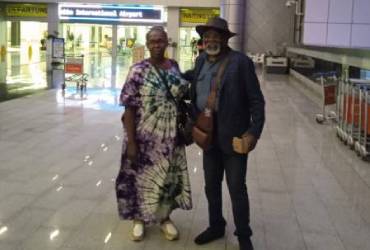 Le président d'AENSAH association et son équipe membre d'AENSAH association à l'aéroport de Ouganda Kampala -Entebbe pour venir à Kinshasa, après avoir séjourné à Bunia où il avait visité le camp de déplacés de guerre de l'Ituri du M23 et avoir fait connaissance de l'abbé Justin responsable du Caritas Bunia pour plus tard nouer des relations de partenariat avec l'église catholique de Bunia.