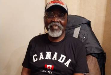 Président d'AENSAH assocaition en Tee-shirt noir avec l'inscription Canada dans son bureau de travail.