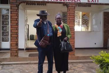 Le président d'AENSAH association et son épouse membre d'AENSAH association à l'aéroport de missionnaires protestants qui font liaison entre Ouganda Kampala en passant par Kajjansi qui, pour le départ vont à u aéroport de Arou, puis pour l'arriver à un second aéroport qui menait vers Bunia, dans des petits avions porteurs missionnaires protestants.