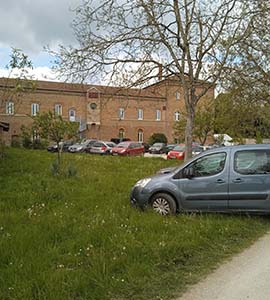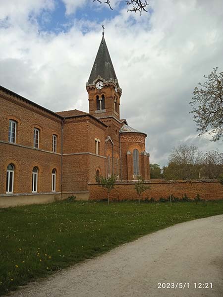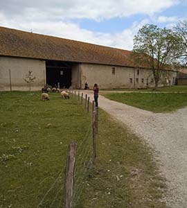 Dans l'Abbaye Notre-Dames des Dombes derrière en allant du côté de la ferme